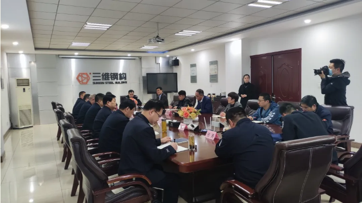 3月27日,棗莊市公安局副局長田傳海,滕州市副市長、滕州市公安局局長杜茂廣一行蒞臨我司調研指導企業社會治安工作。三維鋼構董事長、書記等陪同接待。